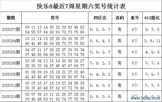 福彩慷慨8第2025319期(上周六)奖号追想:02 07 08 10 11 21 26 27 28 29 39 46 48 59 61 62 74 77 78 79,其中奖号四区比为5:6:3:6,012路比为5:6:9,包含6个重号07、26、29、48、62、79,包含连码07 08、10 11、26 27 28 29、61 62、77 78 79。